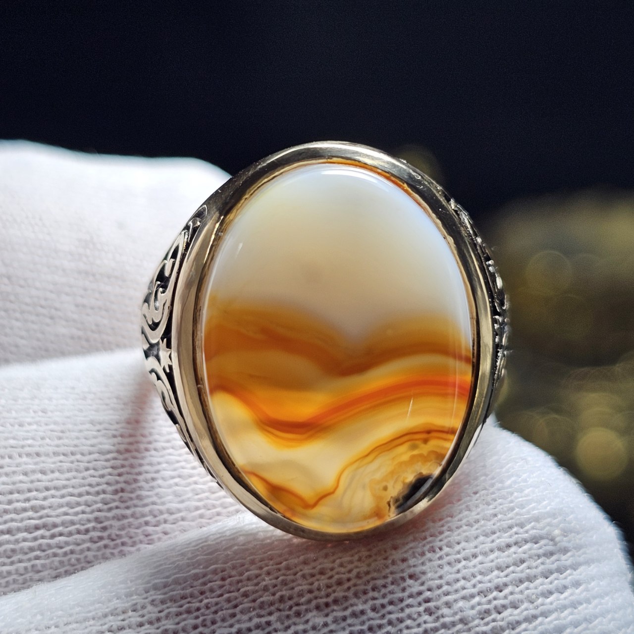 انگشتر طلا روس با سنگ عقیق سلیمانی معدنی خراسانی
