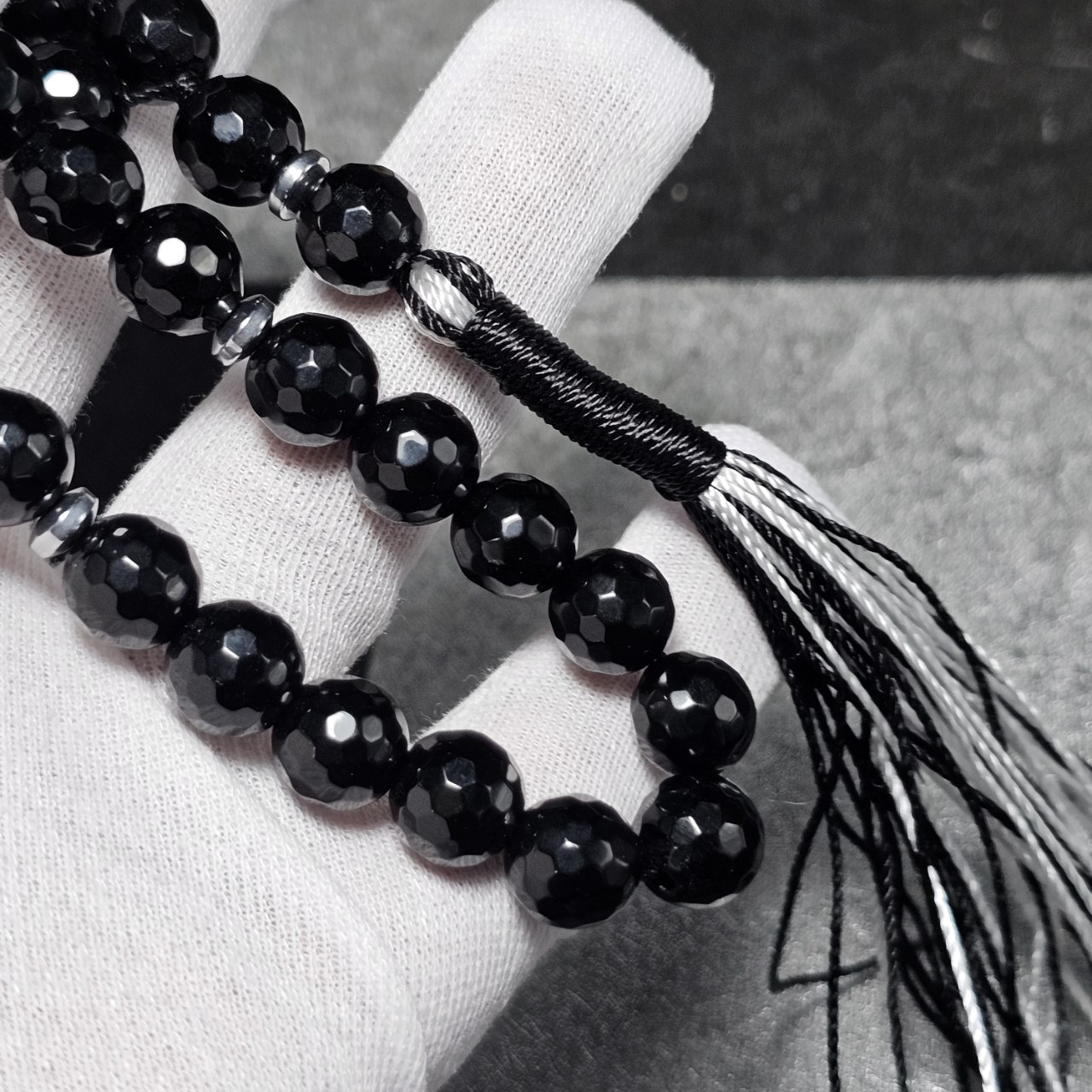 تسبیح ۳۳ دانه سنگ اونیکس معدنی تراش دار کد  37087