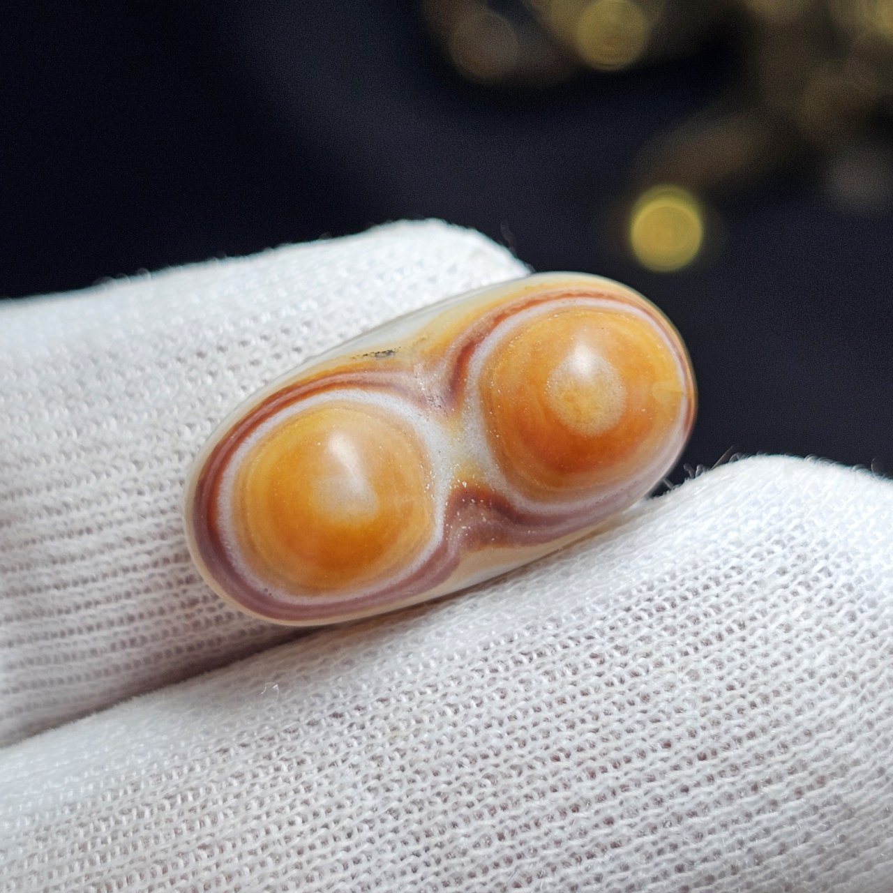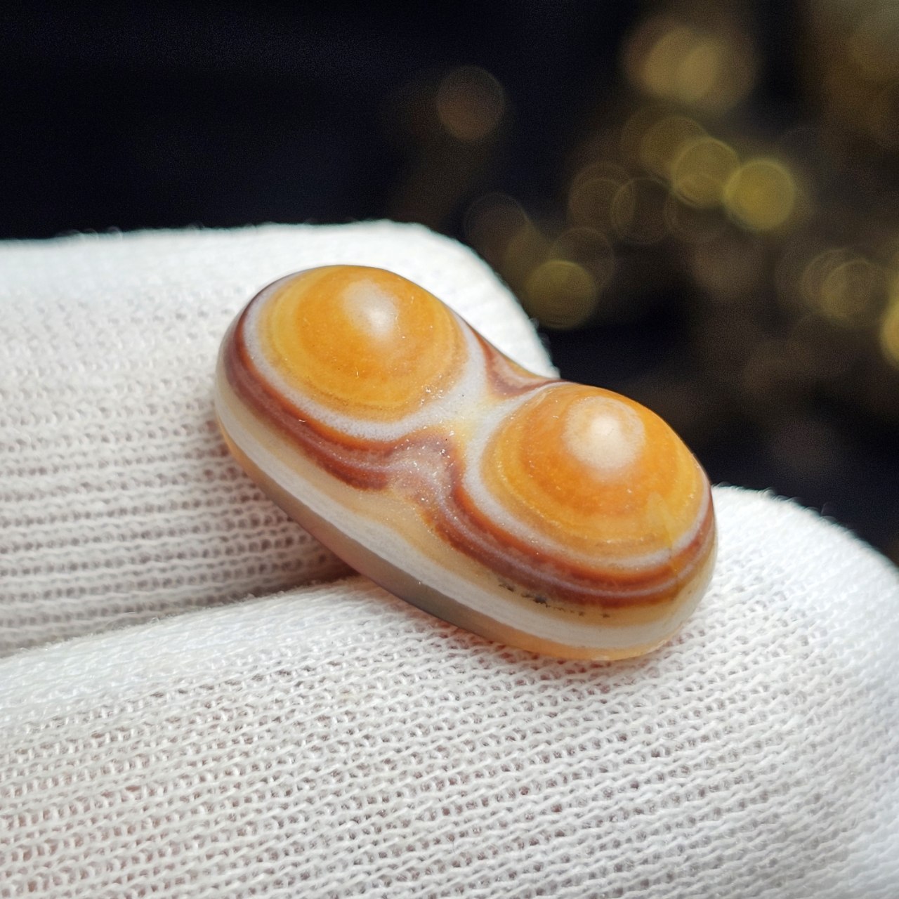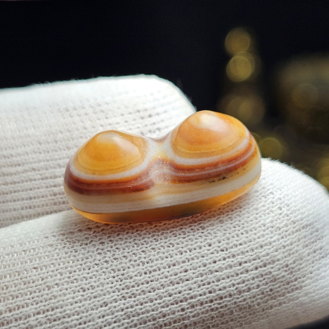 نگین سنگ عقیق سه پوست باباقوری معدنی تراش کهنه دو کوهانه کد  37257